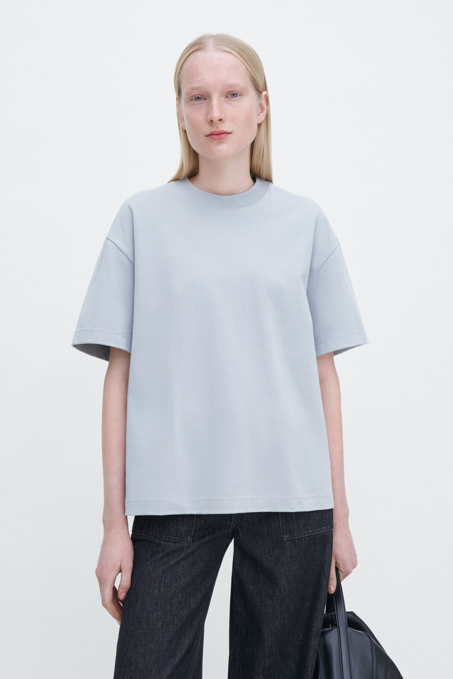 Das Oversize-T-Shirt in Gewittergrau ist aus schwerem Bio-Baumwolljersey gestrickt. Rundhals-Design mit dem Filippa K 93 Monogramm in farblich abgestimmter Stickerei in der Nackenmitte. Trage dazu einen Blazer für ein elegantes Outfit oder wähle lässige Jeans für einen legeren Look.