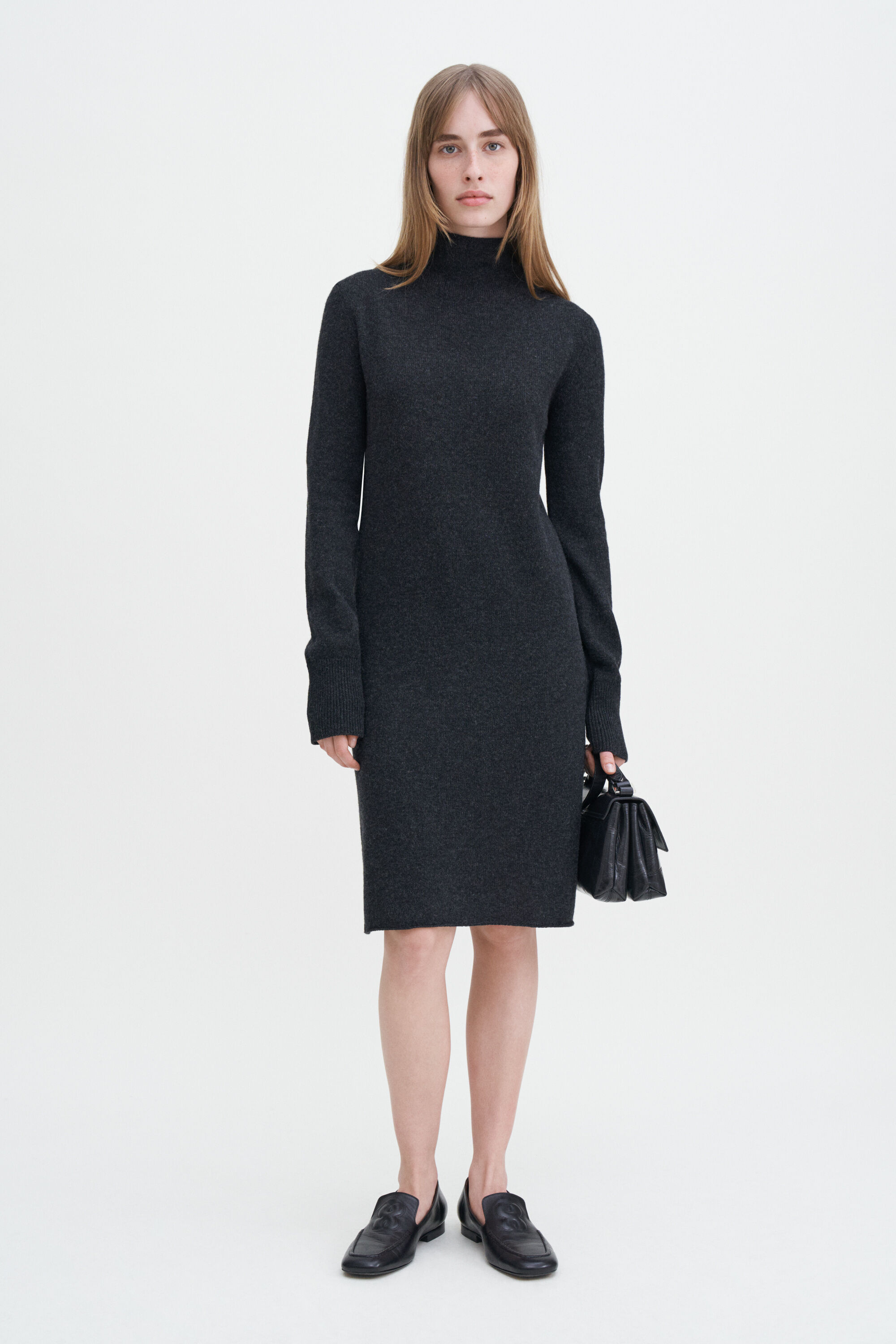 The Funnelneck Dress has a regular fit knit from mid-weight Italian blend of wool and recycled cashmere. Designed to fall above the knee, and embroidered with the Filippa K 93 Monogram.