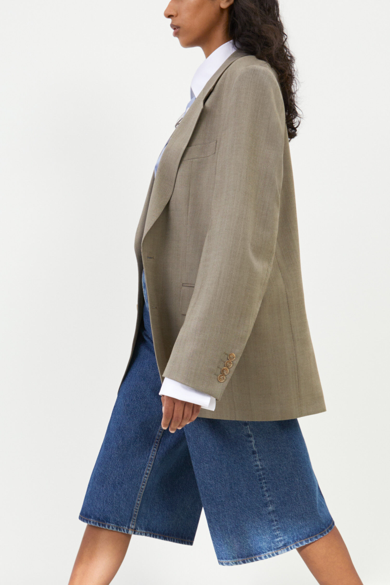 The Jean Work Shorts have a regular wide-leg fit with a high waist and below-knee length. Workwear-inspired jean shorts in a non-stretch denim blend of organic and recycled cotton with TENCELâ„¢. Designed with a wide-leg fit, high waist and below knee length. Wear them with a white tee for a timeless look.