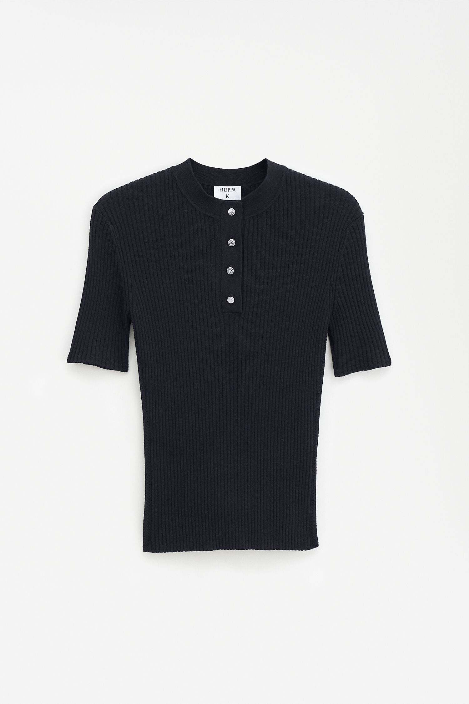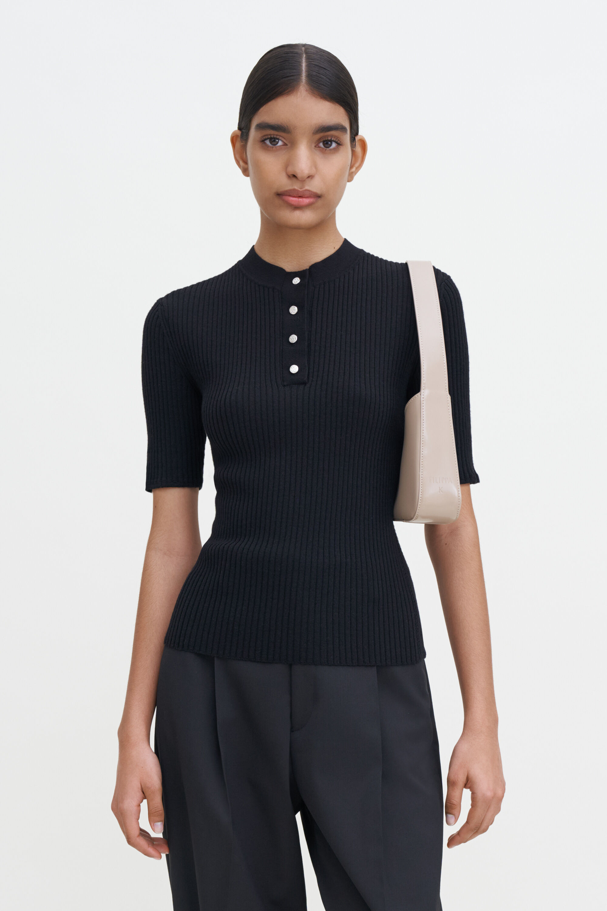 The Buttoned Knit Top has a slim fit with a lightweight ribbed texture, knit from Italian wool. Detailed with silver Filippa K Monogram buttoning.